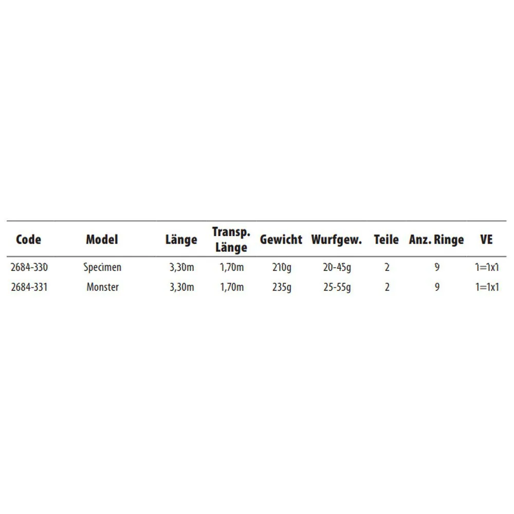 Un best-seller de la gamme SPRO. Ces cannes sont idéales pour toutes sortes de disciplines. Pointe sensible et action parabolique. Idéal pour la pêche au flotteur, la pêche au posé plus légère et la pêche au method feeder.