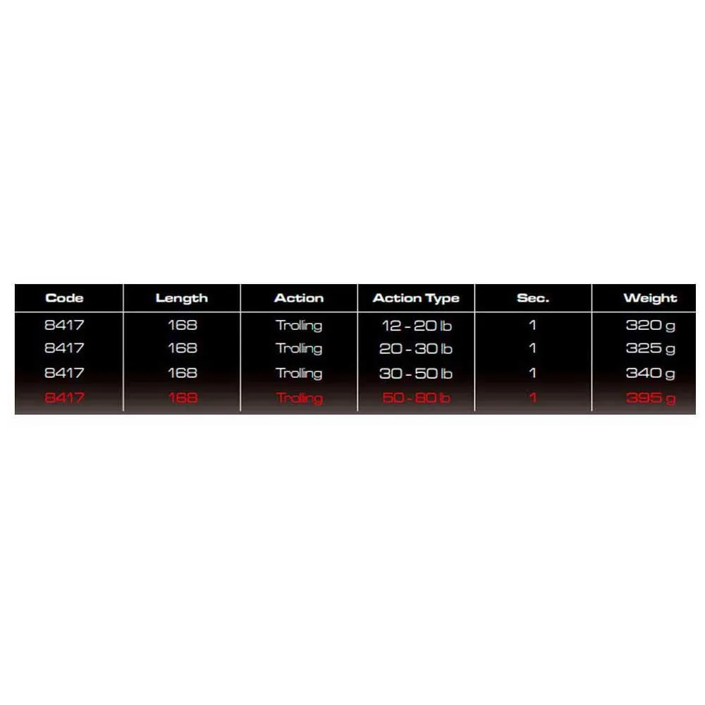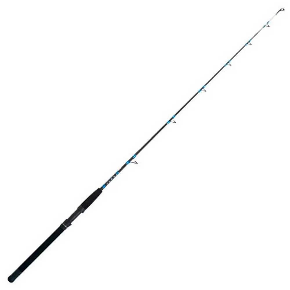 Modèle développé pour la pêche à la traîne à bord. Sa construction monobloc compacte combine des résines et du carbone 24 tonnes pour une grande durabilité et flexibilité. La pointe est très sensible, capable de lire les mouvements du leurre à tout moment. Il a une action parabolique, progressive et élastique qui sera notre meilleur allié lors des combats.