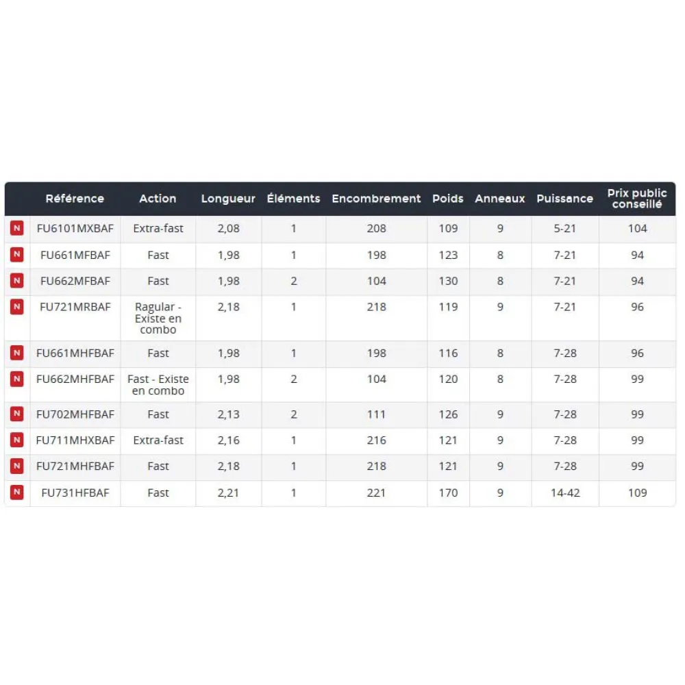 La sĂ©rie Fuego a Ă©tĂ© Ă©tudiĂ©e spĂ©cifiquement pour la pĂȘche du black bass mĂȘme si certains modĂšles restent polyvalents et permettent daborder les pĂȘches plus classiques du brochet ou de la perche. Les modĂšles MX et MHX ont une action super rapide facilitant les ferrages puissants pour la pĂȘche en texas ou au jig dans les herbiers. Les actions set M et MH sont polyvalentes. Laction MR propose un blank plus doux