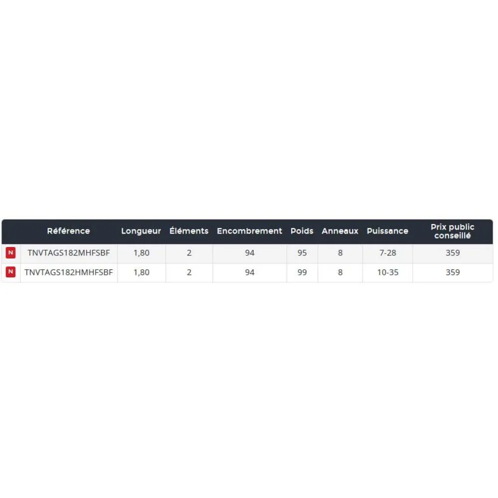 – SVF : La réduction de la quantité de résine et le serrage amplifié des fibres offrent un blank plus léger, sensible et daction plus rapide.