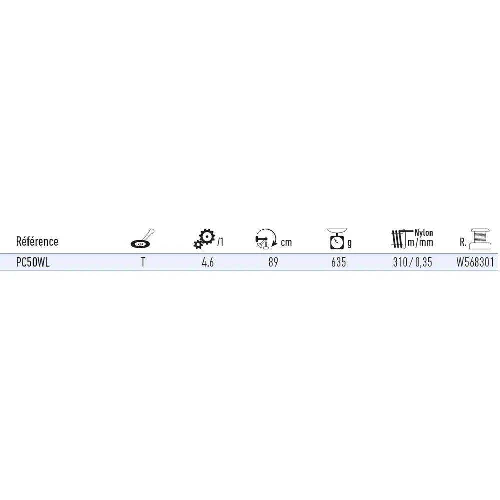 – PC 50 WL (With Line) : garni de fil blanc 45/100