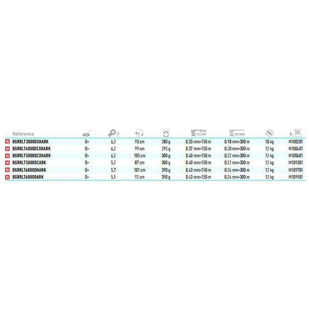 Le Bg Lt Rr Ark est un moulinet robuste avec un corps en aluminium. L’énorme disque dur Digigear et le rotor à air en forme d’arc offrent un vent doux et précis. La dernière génération de Atd Drag vous donne un contrôle total sur le combat.