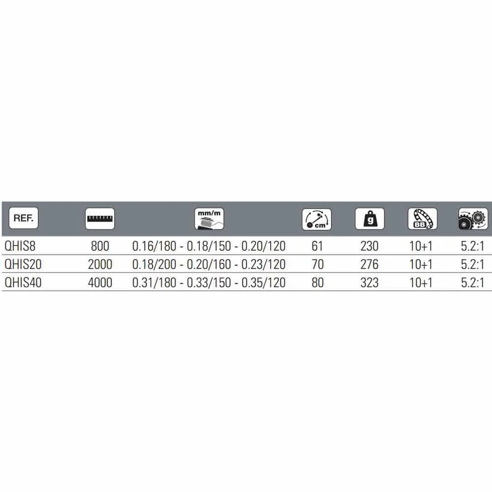 Puissance de frein : 12 kg (800),15 kg (2000), 18 kg (4000).