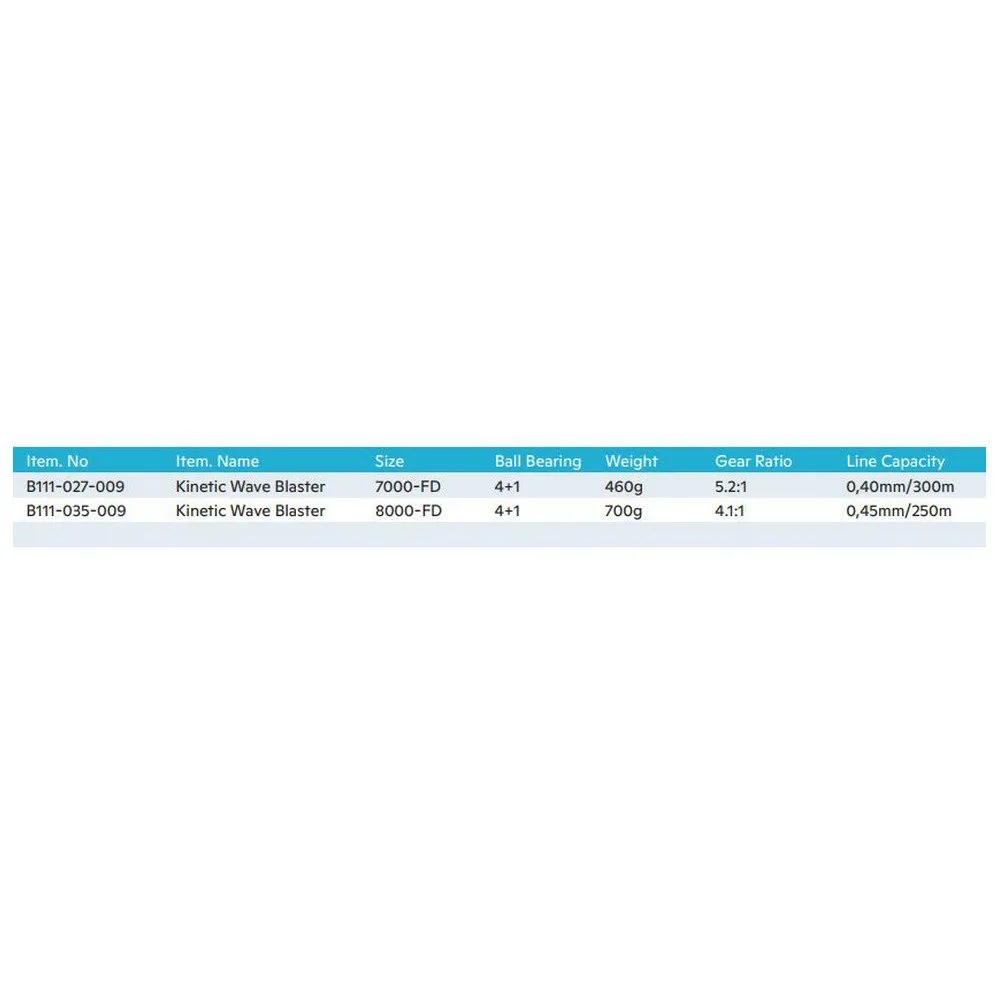Pour les passionnés de surf, la distance compte et le moulinet Kinetic Wave Blaster Surf Spinning Reel. Il est spécialement conçu pour maximiser la distance de lancer, sans renoncer à la pleine puissance et au contrôle. Les deux moulinets sont dotés d’un corps en composite de graphite, d’un rotor à contrepoids, d’une bobine en aluminium allongée et d’une puissance de traînée extrême. Line Guard empêche l’enroulement de la ligne sous la bobine.