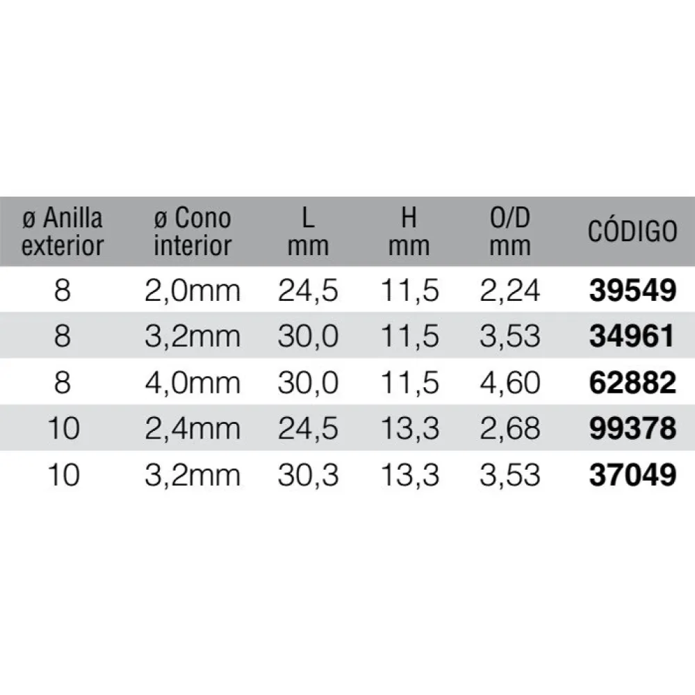 | Taille | 10.0 mm / 2.68 mm Grey, 8.0 mm / 3.53 mm Grey, 8.0 mm / 4.60 mm Grey |