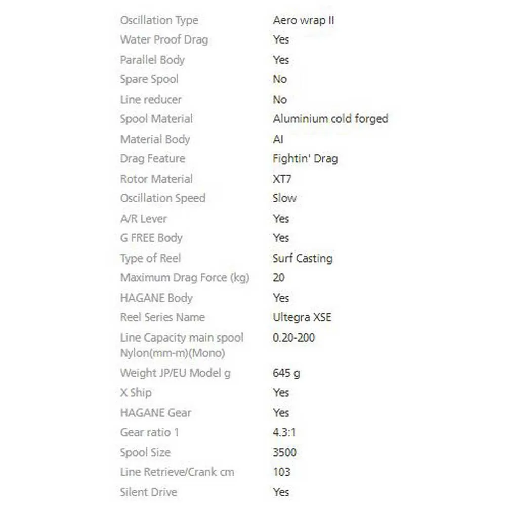 Les Ultegra XTE et XSE sont basés sur les modèles les plus vendus de Shimano et sont destinés à redéfinir le marché des moulinets longue portée à prix moyen. Contenant de nombreuses technologies de pointe « long cast » de Shimano, dans des corps monochromatiques élégants, ces moulinets dépassent les attentes et sont en passe de devenir des best-sellers dans toute l’Europe. Seul Shimano a une oscillation super lente, ce qui est une raison suffisante pour acheter les Ultegra XTE et XSE. Mais considérez toutes les autres technologies contenues dans ces superstars à longue portée et elles sont impossibles à ignorer. Non seulement ces moulinets vous permettront de lancer plus loin, mais ils joueront également mieux le poisson, dureront plus longtemps et auront fière allure sur n’importe quelle canne avec laquelle vous les associez. Si vous êtes un pêcheur de carpe et que vous préférez les couleurs sombres « furtives », optez pour le XTE, si vous êtes un surfcaster ou préférez des couleurs plus claires, le XSE « argenté » devrait être votre choix. Quel que soit votre choix, vous pouvez être sûr que vous avez pris une excellente décision. Caché à l’intérieur du corps CI4+ léger et rigide de l’Ultegra se trouve une sélection de la technologie la plus avancée de Shimano. HAGANE Gear et X-SHIP se combinent avec Infinity Drive et Silent Drive pour offrir une douceur incroyable et une rotation légère. Cependant, ne soyez pas dupe.Mettez l’Ultegra sous pression et il produira toute la puissance dont vous avez besoin, et plus encore. Et bien que l’ingénierie interne soit une œuvre d’art, c’est pour la performance de lancer que vous achèterez ce moulinet. L’oscillation Super Slow 5 génère une ligne incroyablement lisse qui réduit la friction et augmente le potentiel de lancer. Mais il y a d’autres fonctionnalités qui contribuent aussi. Rigid Cast réduit la déviation de la bobine au moment de la libération lors d’un lancer et Parallel Body envoie la ligne à l’angle parfait vers le premier guide. Et lorsque la ligne passe sur la lèvre de la bobine AR-C en aluminium, elle « s’enroule » pour réduire la friction. Le résultat est une brillance jamais vue à un prix aussi abordable.