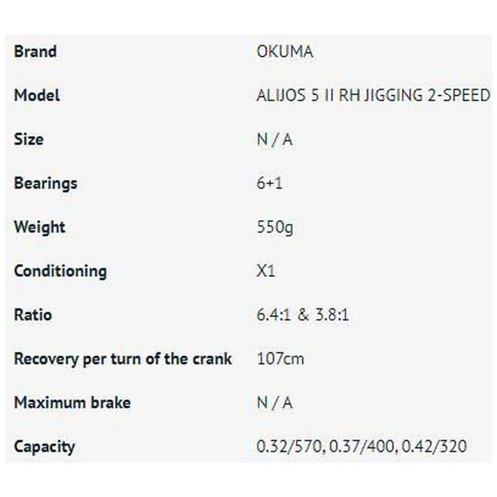 L’Alijos 2-Speed Lever Drag est une machine à arrêter les gros poissons légère et compacte. Construit avec de l’aluminium usiné 6061-T6 pour une résistance ultime. Le cadre monobloc continue jusqu’au côté sans poignée, plaque latérale qui dispose d’un système de contrôle de coulée pour un contrôle de bobine de précision. Les roulements de la bobine sont baignés d’huile TSI, ce qui lui confère le nec plus ultra en matière de coulabilité et de libération de la bobine. Les moulinets Alijos sont dotés d’une poignée plus longue de 90 mm et d’un bouton de poignée en T surdimensionné pour un couple et un confort exceptionnels. Le mécanisme de clic a été retravaillé pour donner un son de clic plus fort pour les applications de pêche à la traîne ou de bâton mort. Le nouveau mécanisme de changement de vitesse à 2 vitesses a été entièrement retravaillé par Okuma pour lui donner le nec plus ultra en matière de changement de vitesse. Le DFD: Dual Force Drag exerce une énorme pression de traînée avec ses plaques de traînée 100% plus grandes.