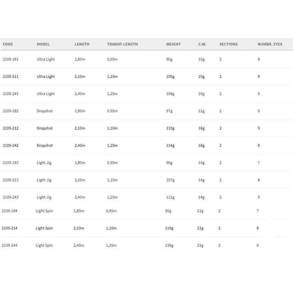 Une gamme de cannes à pêche aux leurres légers à un prix incroyable. Composé de cannes de 1,8 à 2,4 m dans diverses spécifications, il existe une canne pour toutes sortes de pêche aux leurres légers. Les cannes sont construites avec un guide de jambe unique réduisant le poids et un garde-hameçon unique qui sert également de garde-corps Dropshot/Bottom Jig.